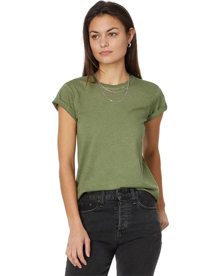 - Style up your summer look wearing the AllSaintsâ„¢ Anna Tee. This regular fit tee features crew neckline, short sleeves, straight hem and brand logo on the back of the neck.