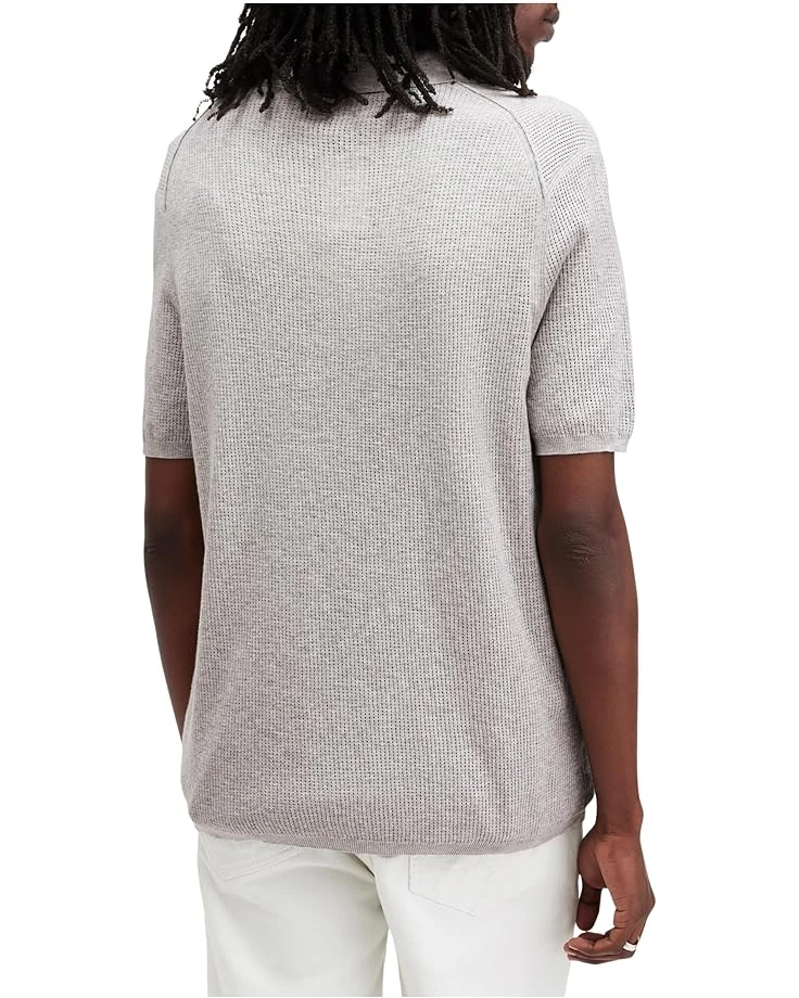 - Get ready to elevate your casual style choosing the AllSaints™ Aubrey Short Sleeve Polo. The shirt is super lightweight and soft with an open-stitched texture that sets it apart from the rest. Featuring a classic polo neckline with a three-button placket, short sleeves with ribbed trims, and dropped external shoulder seams, this shirt exudes effortless coolness.