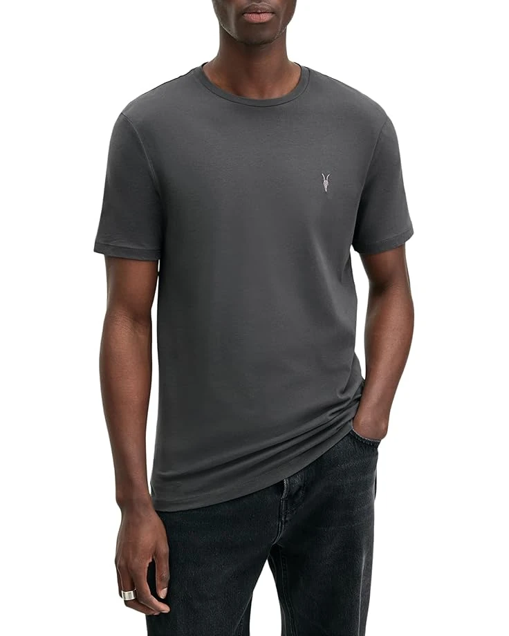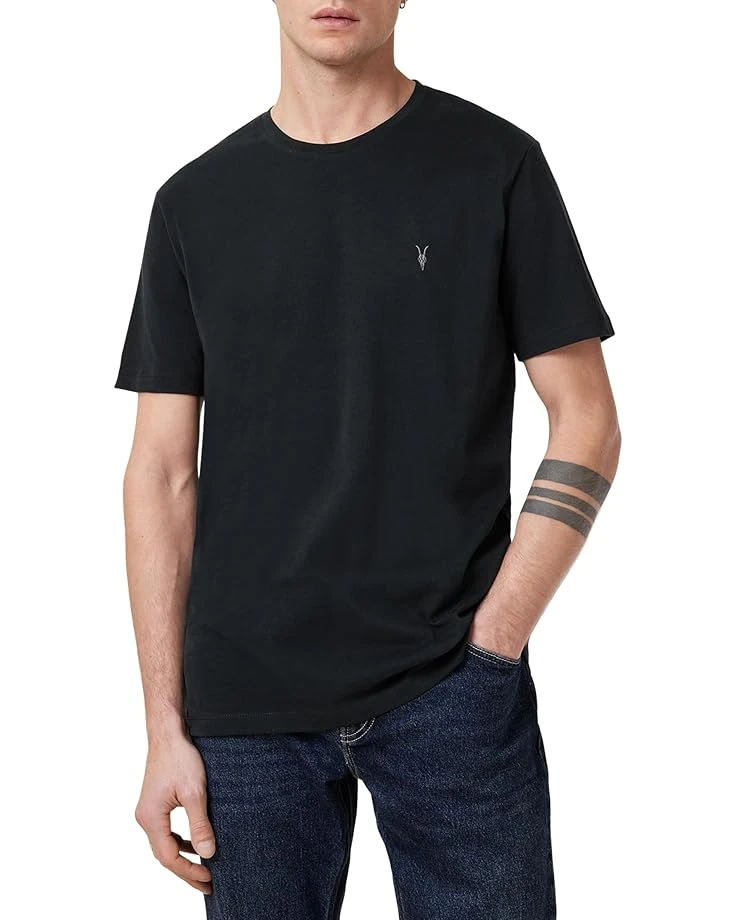 - Upgrade your classic T-shirt with the AllSaintsâ„¢ Brace Short Sleeve Crew, featuring signature ramskull embroidery at left chest and straight hem.