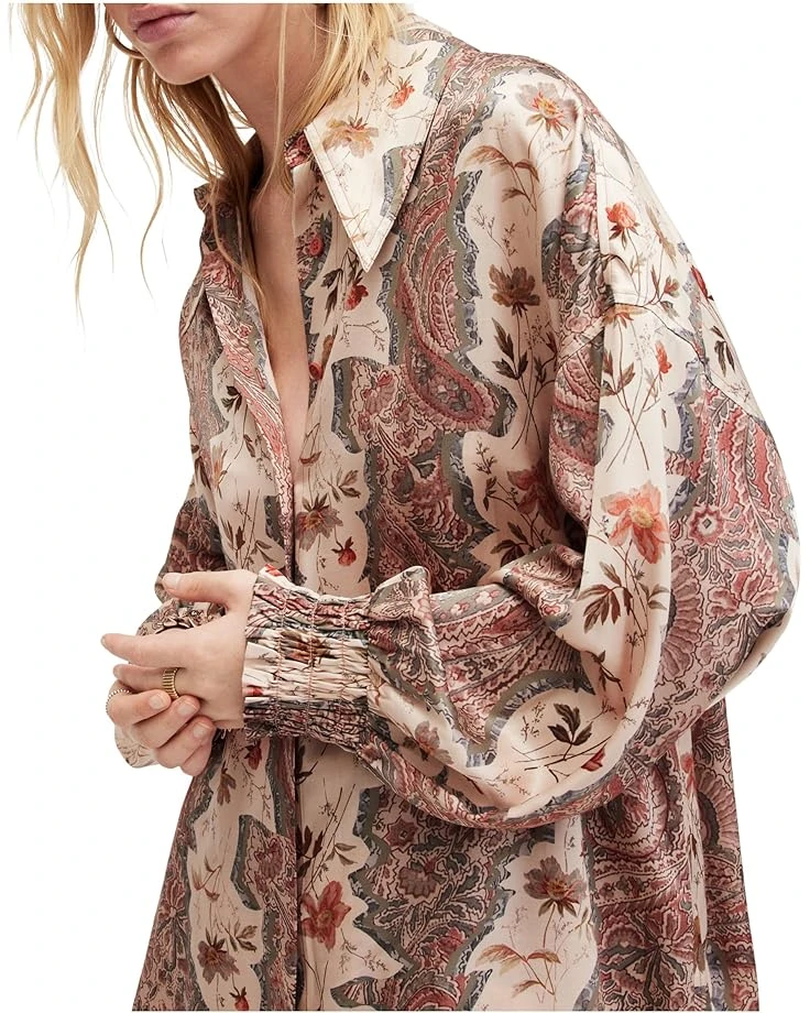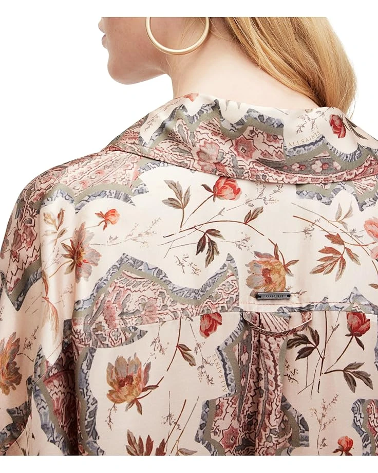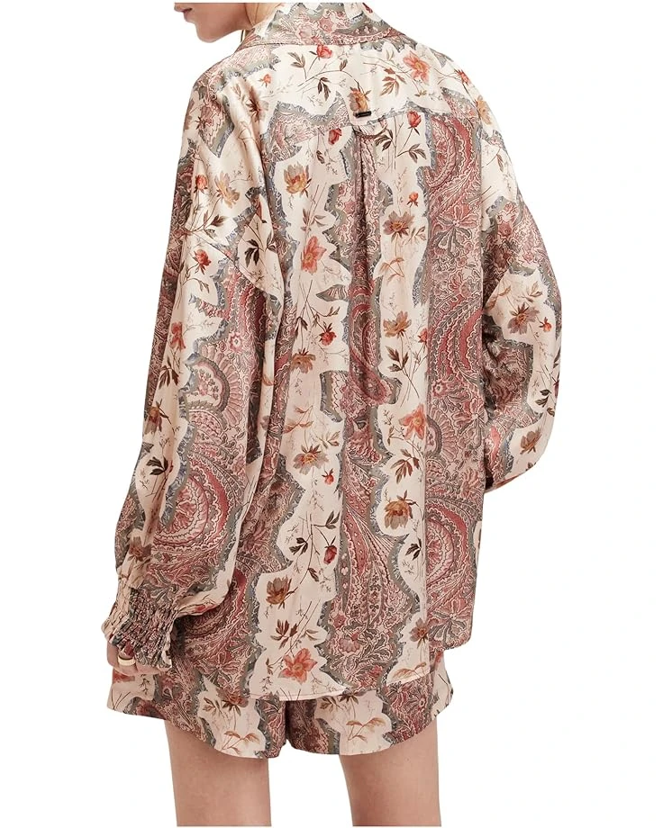 - Flaunting a vintage-inspired paisley pattern all over, the AllSaintsâ„¢ Charli Cascade Shirt looks classy, chic, fashionable, and what not! It is made from a luxe silk-blend fabric and features a relaxed fit with a spread collar, long sleeves with shirred cuffs, and buttoned front closure.