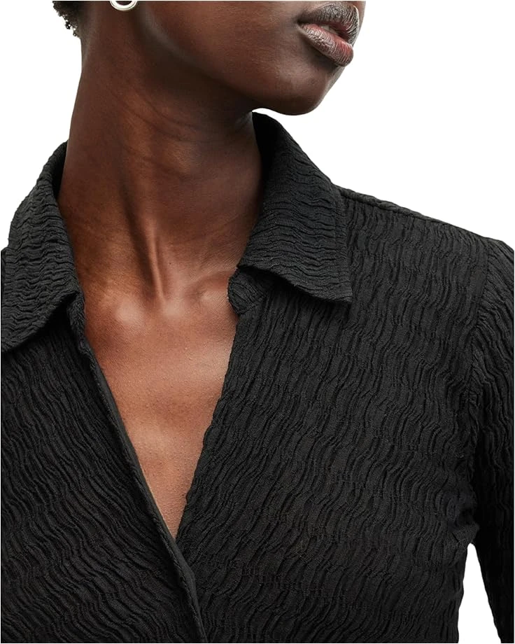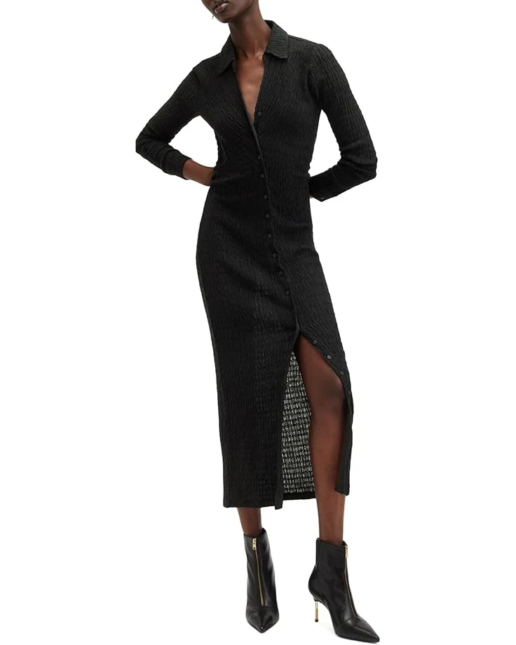 - From formal parties to events, the AllSaints™ Connie Midi Dress is perfect to make your fashion statement. The cotton blend fabric of the dress offers all-day comfort and durability. With its crinkle fabrication, this long dress offers a flattering fit. Styled with long sleeves, a collared neckline, and a buttoned front closure, this chic dress makes a stylish addition to your wardrobe.