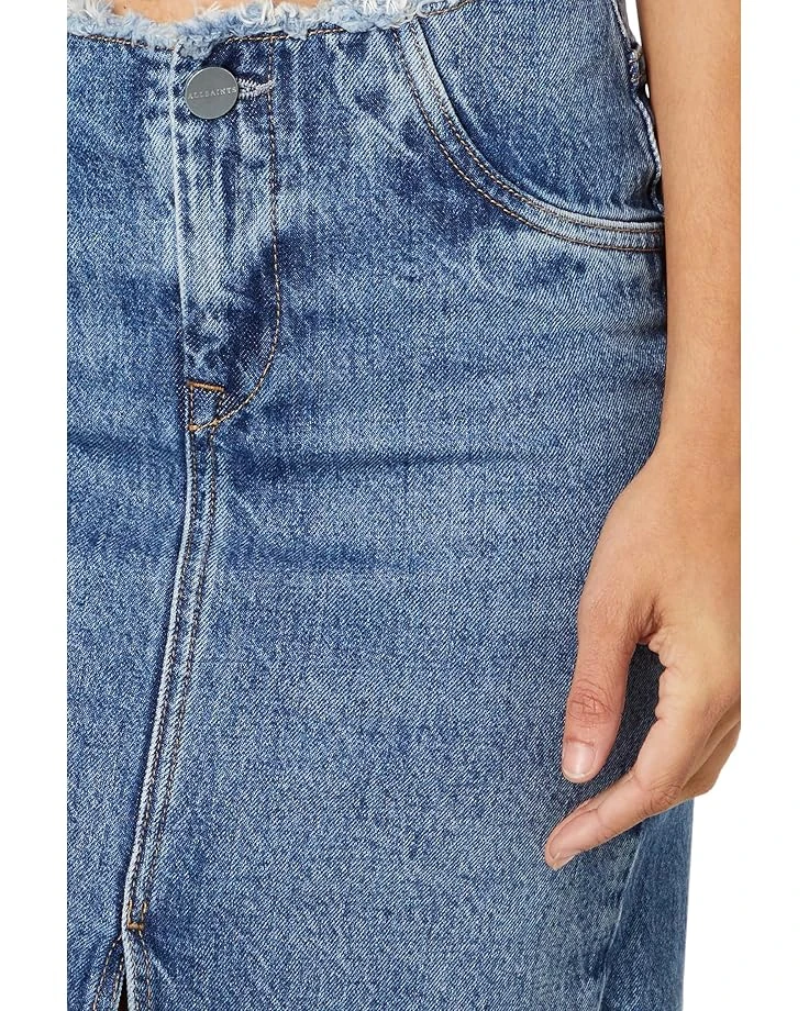 - Step in gracefully and make every moment shine wearing the AllSaintsâ„¢ Cyra Maxi Skirt. It features frayed detailing at the waist with zip-fly and buttoned closure.