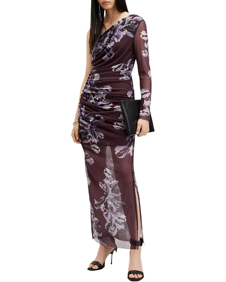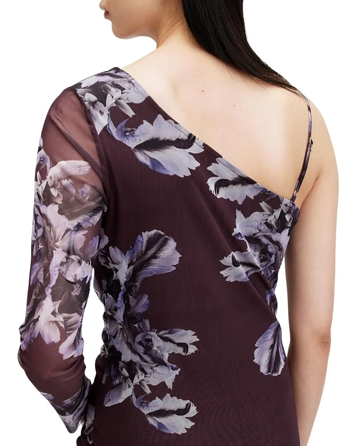 - Grab everyone’s attention wherever you go wearing the AllSaints™ Eris Dress. This printed dress is styled with an off-shoulder neckline, cap sleeves, and a straight hem. The polyester and elastane blend of the dress takes your comfort to the next level. Flaunt your great style and curves wearing this fitted dress.