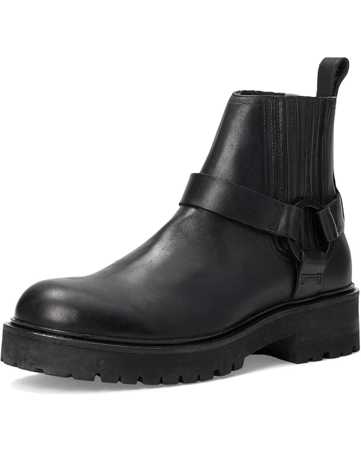 - Motorbike or not, the AllSaints™ Hank Biker Boots bring the biker vibes to a look through the rounded toe design and harness detail. These ankle boots are made of a rubber insole and leather lining for all-day comfort. The leather upper features a pull-on style. Stylish and durable, these heeled boots are perfect to pair with different outfits and styles.