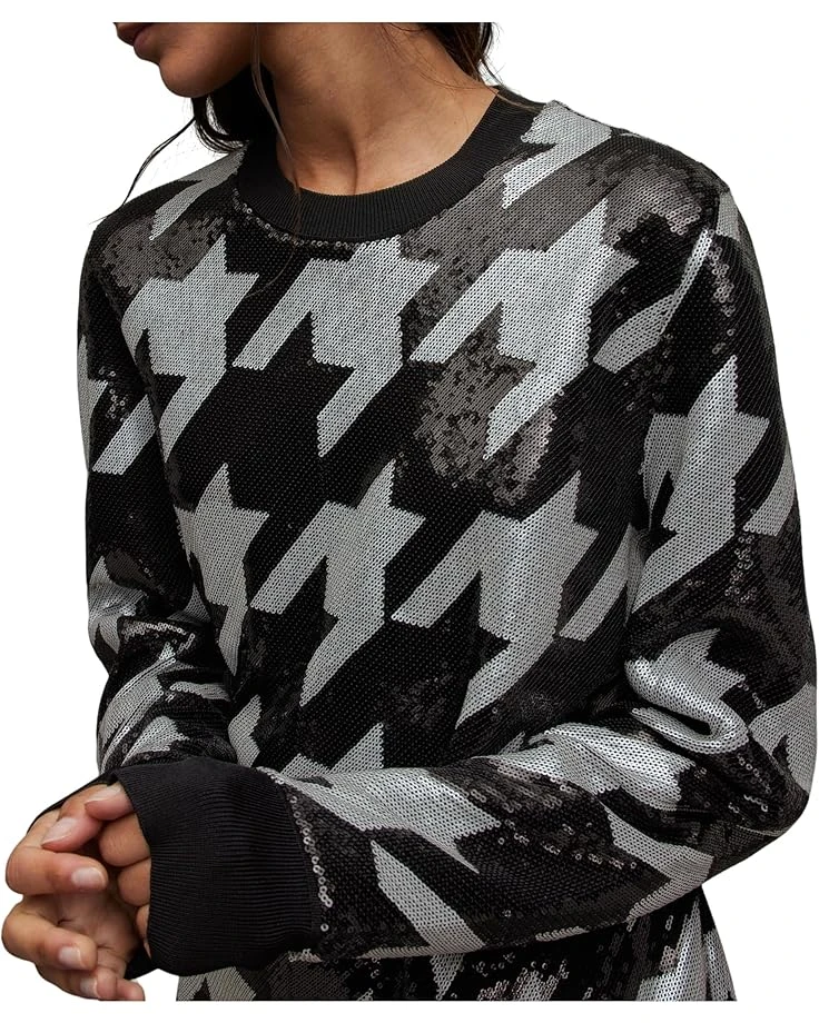 - Stand out at a party by wearing AllSaints™ Juela Toni Dress. Pullover style. Crew neck pullover has long sleeves with ribbed cuffs, and ribbed trim. Sequins with bold check patterns make it stylish in look.