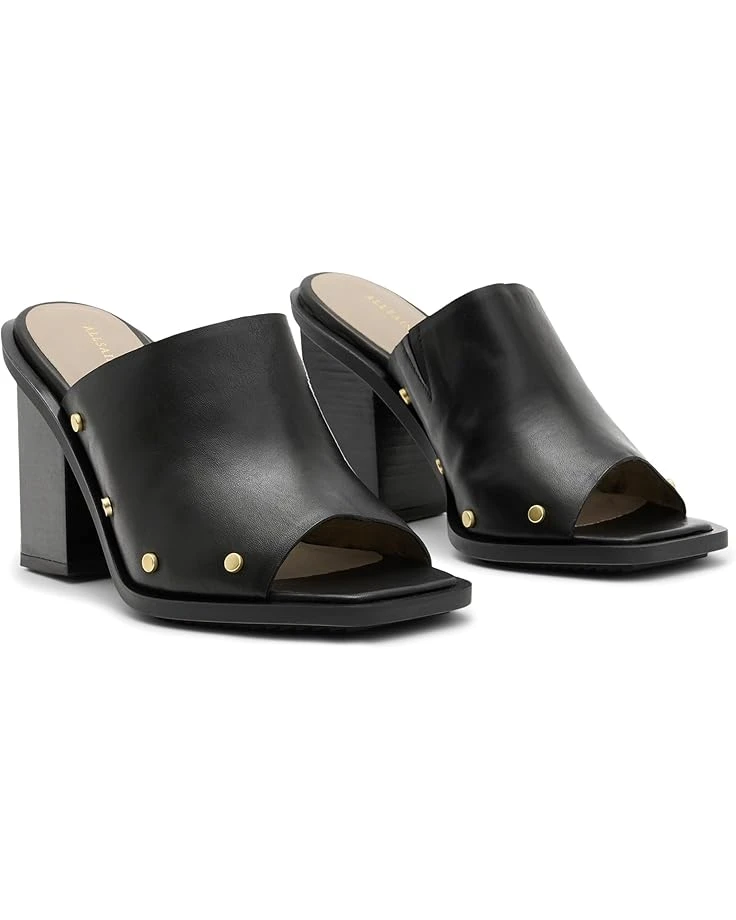 - Amp up your work-to-weekend style by opting for the AllSaints™ Kelly Mule Heels. Framed in a simple yet elegant style with an open square toe and a lofty stacked block heel, these shoes look stylish with embellished studs on the sides. The slip-on design makes them easy to wear on and off.