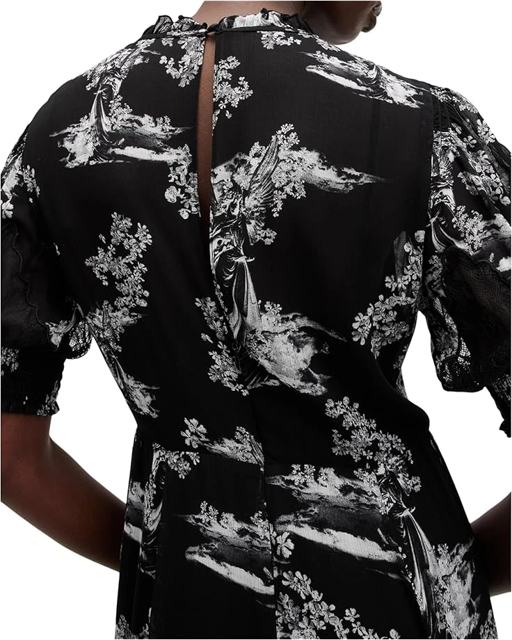 - Cause some serious outfit envy in the AllSaints™ Laverna Dress. The floral print dress features smock detailing with a high neckline, short puffy sleeves, and zippered side closure.