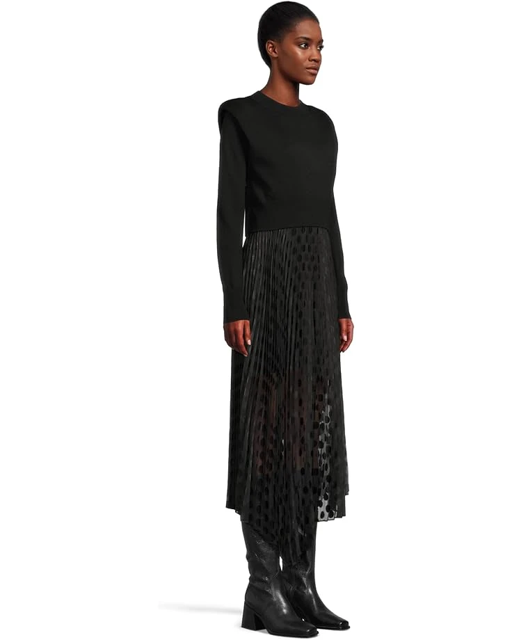 - Whether worn together for a layered look or separately, the AllSaints™ Leia Dott Dress is sure to throw an impressive appeal. The dotted dress features a scoop neck, adjustable shoulder straps, and a fit-and-flare silhouette. Paired with a crew neck woollen top with long sleeves, this combination ensures both warmth and style.