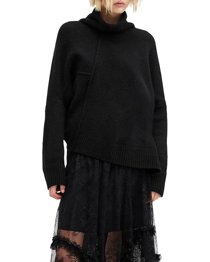 - Keep your look cozy dressed in this soft knit wool-blend AllSaintsâ„¢ Lock Roll Neck sweater. Asymmetrical shawl collar and hemline add to a haute appeal.