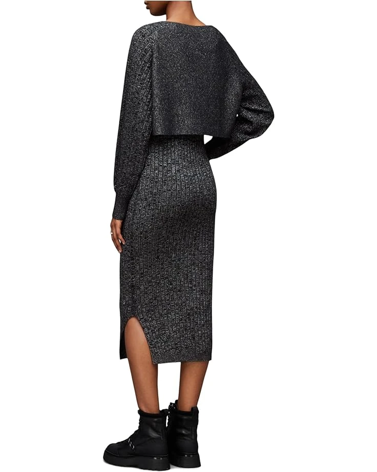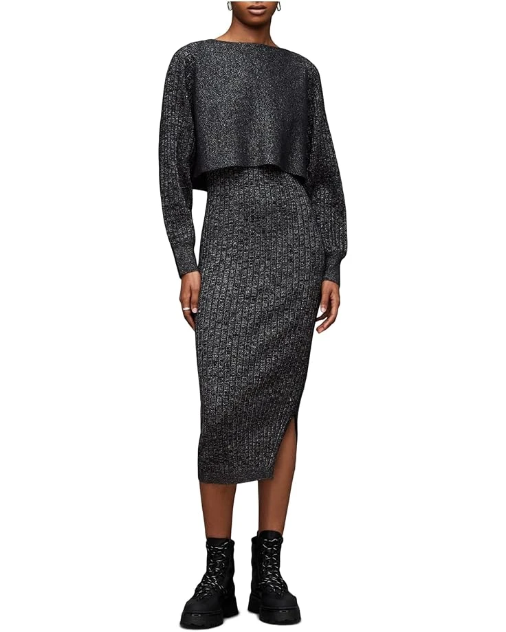- The AllSaints™ Margot Sparkle Dress, is designed to add a little sparkle to your casual style. It has a ribbed and layered construction. The jumper features a scoop neck with added volume in the full sleeves. It sits on a bodycon dress with side splits – a casual dress that flatters for day-to-day dressing.