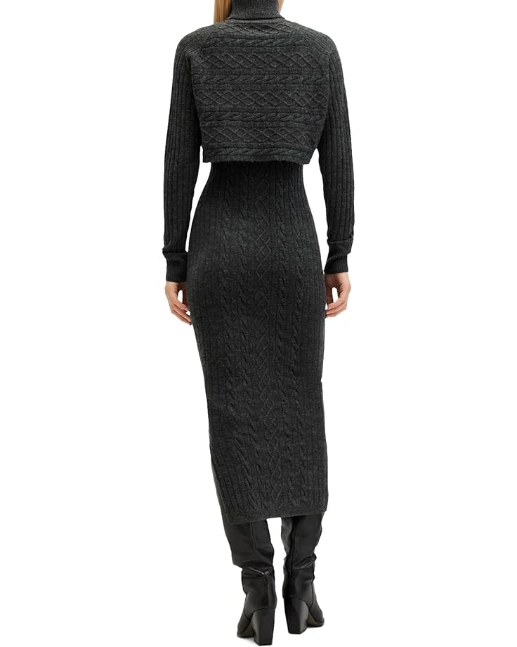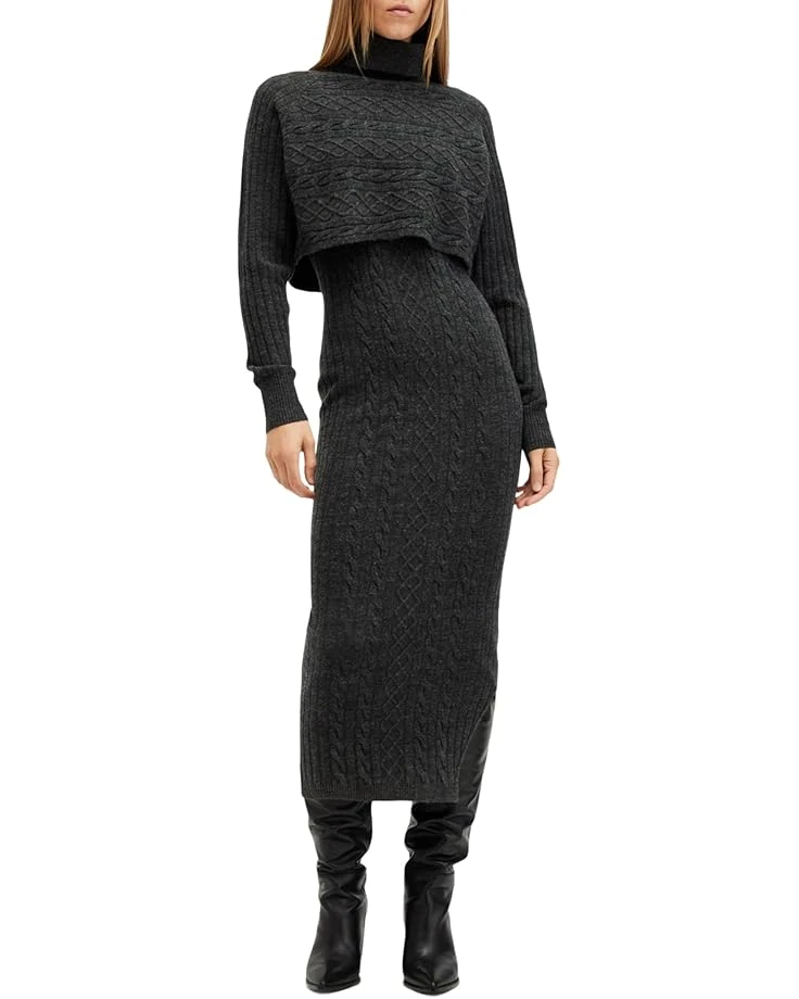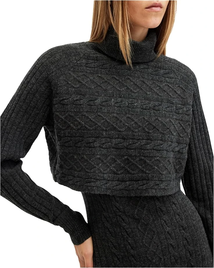 - Double the style, double the comfort – meet the AllSaints™ Muriel Dress! Knitted perfection for chilly days, this two-in-one masterpiece combines a cozy funnel neck jumper with ribbed trims and a slim-fitting midi dress. Designed for versatility, wear them together for a layered look or separately for endless outfit options. The pullover style and sleek silhouette make it an effortless choice for any occasion.