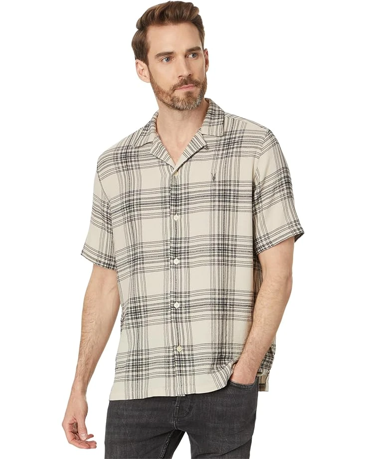 - Wow everyone with your classy look wearing the AllSaints™ Padres Short Sleeve Shirt. This breathable lining shirt features notch lapel collared neckline, short sleeves, allover checkered print and straight hemline with side slits. This shirt has button front closure and brand logo on the left chest.