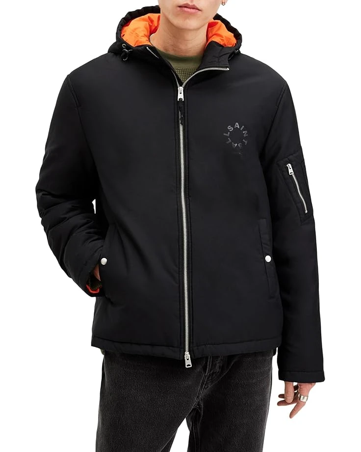 - Throw on the AllSaintsâ„¢ ROCKPILE JACKET for an added layer of warmth on chilly days. Featuring an attached hood with bungee cord adjustments, front zipper closure, long sleeves, zipper pocket on upper-left sleeve, and front snap-closure welt hand pockets.