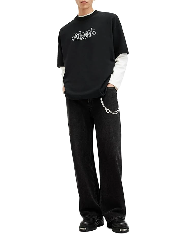 - Effortless cool meets laid-back style wearing the AllSaints™ Sternum Short Sleeve Crew. Crafted for comfort and edge, this regular fit tee features a classic crew neck and short sleeves, making it an easy pull-on essential for your wardrobe. The breathable fabric keeps you cool, while the bold AllSaints branding on the chest adds a signature statement. Perfect for layering or wearing solo, this versatile piece is designed to elevate your casual look with a touch of urban sophistication.