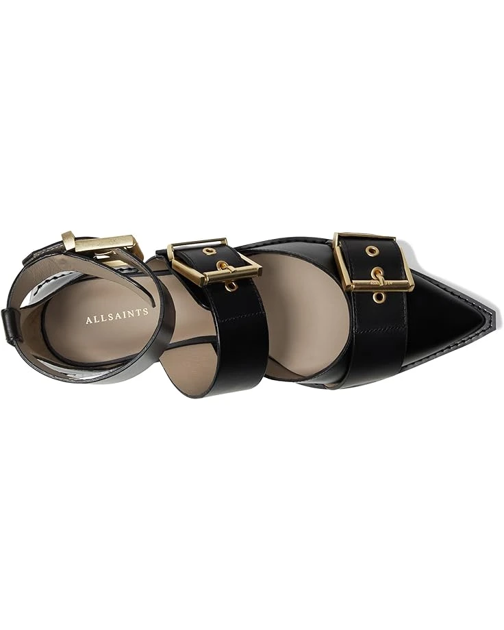 - Accented with large buckles, the AllSaints™ Sutton Shoes feature a pointy toe shape to provide a sleek look. The low-top footwear boasts leather upper and lining construction.