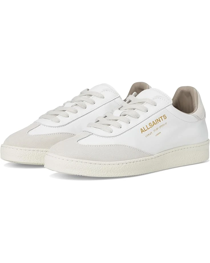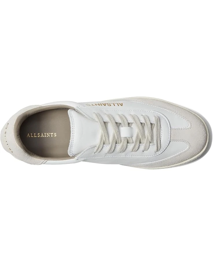 - Walk with strength wearing the AllSaints™ Thelma Sneaker. Crafted from leather upper, this pair of shoes features round toe, lace-up closure with T-toe, featuring brand underground logo, low-top silhouette, and brand detailing on the sides and footbed.