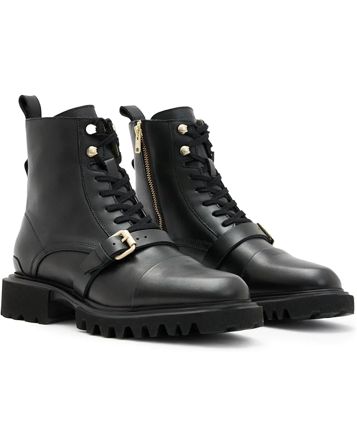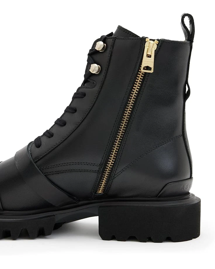 - Buckle up! Keep up with the fashion pace wearing AllSaints™ Tori Boots. Crafted from leather upper with crossover laces and a zippered side closure, the footwear has a decorative buckle strap that offers a refined look. The ethylene vinyl acetate outsole is slightly chunky and the body is detailed with signature metal hardware – that’s the finishing touch.