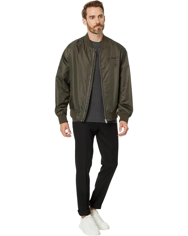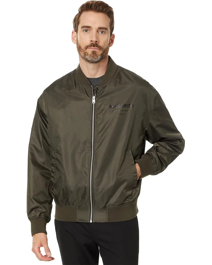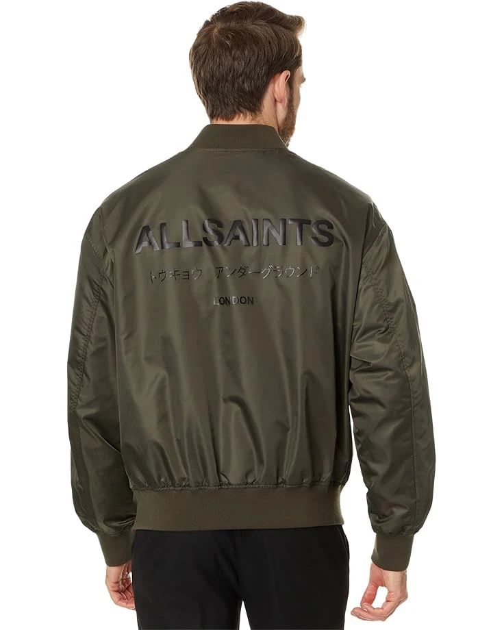 - Stand out with the authentic finesse and sleek flair of AllSaintsâ„¢ Underground Bomber. It features a rib-knit collar, long sleeves with ribbed cuffs, and zippered front closure. Two exterior hand pockets and one interior pocket are designed for added functionality.